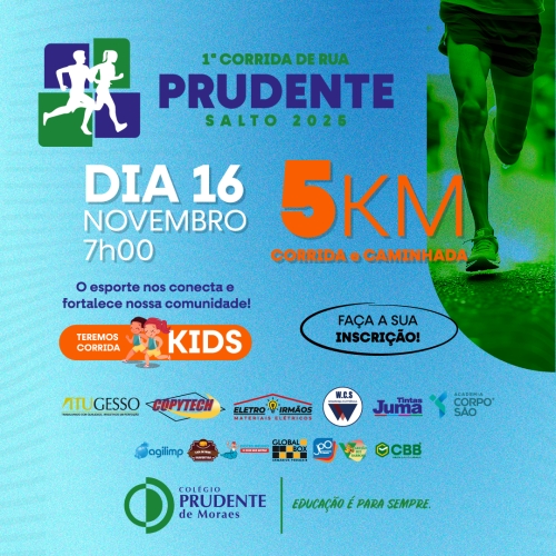 realizada em Salto SP, Endereço: Rua Manoel da Nobrega Colégio Prudente, no dia 16/11/2025, com a distância da corrida 5km,com largada às 07h.