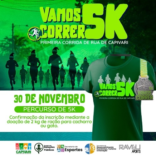 dia 30/11/2025, com a distância da corrida 5Km com largada às 7h.