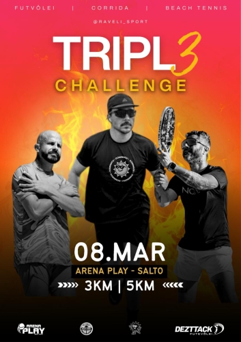 A 1º Corrida Triple Challenge, será realizada na Arena Play, R. José de Arruda Sontag, 215, Jardim Sontag, Salto - Sp no dia 08/03/2026, terá duas distância, 5km de corrida com a largada as 07:00h, e a caminhada de 3km com a largada às 07:15h.