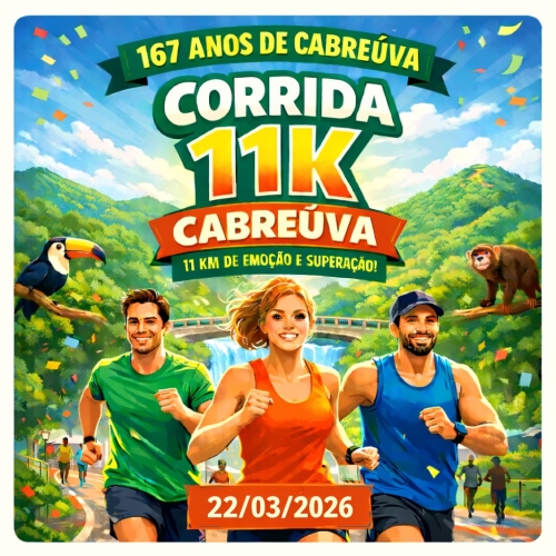 1.2- A Corrida de 167 anos de aniversário de Cabreúva, será realizada na Avenida Vereador José Donato , 852 , bairro Jacaré – Arena Cabreúva, no dia 22/03/2026, com a distância da corrida 11km com largada ás 7h Orientamos chegar uma hora antes da largada.